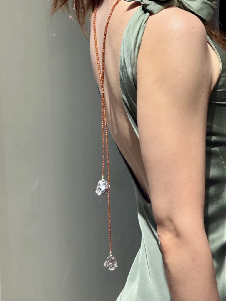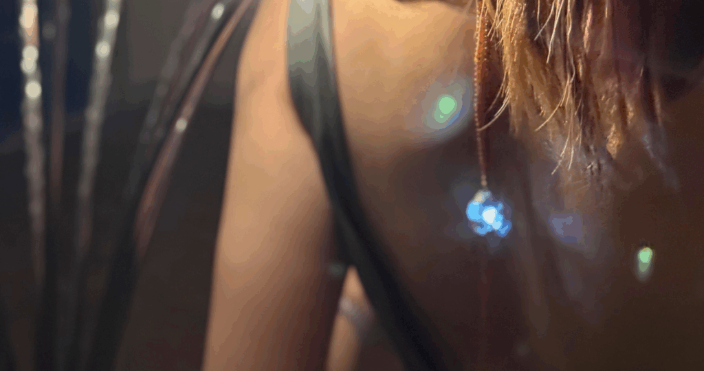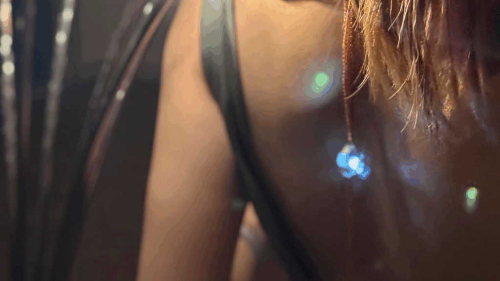Wearing: Multi-position (neck/back drape, shoulder chain, waist chain); two modules magnetically join to illuminate.